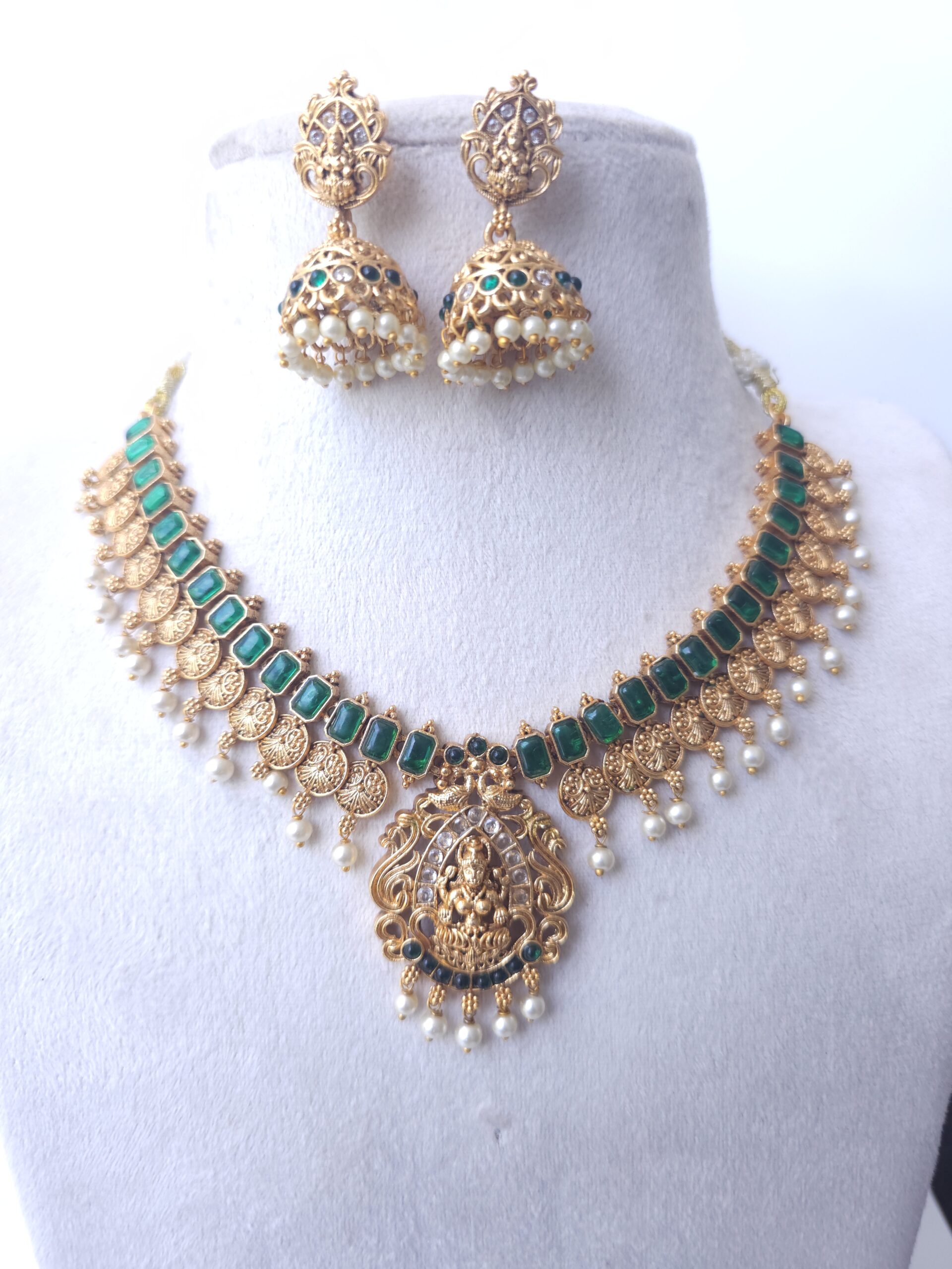 HomeShopBudget StoreLakshmi Emerald Temple Necklace Set
